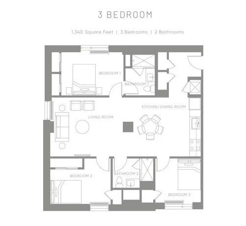 Irvine所有的户型都很推荐,studio,1B1B,2B2B,以及3B2B户型都价格实惠。Studio户型每月$1295起,要知道大学城附近公寓的单人间都要至少$1500以上。3B2B户型平均每人只要$900左右。